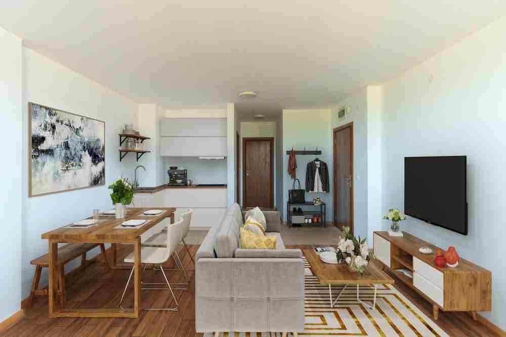 Всеки апартамент е напълно готов до ключ и очаква да посрещне своите собственици. Високото изпълнение на строителните ремонти на жилищaта включва цялостно боядисани стени и тавани, поставени подови настилки – мокет и плочки с прагове, сложени дограми, входна врата и врати за отделните стаи.